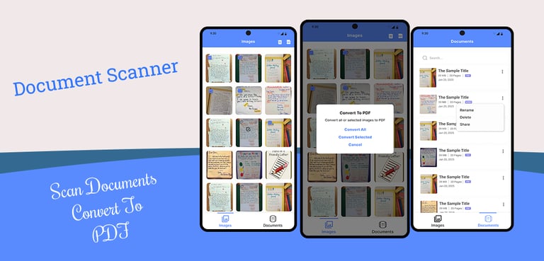 A simple document scanner app that captures images (Camera/Gallery), converts them into PDFs, and lets users view all documents directly within the app. Users can open and view PDFs directly within the app for quick and easy access.