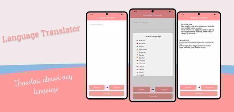 A simple and efficient language translator app that allows users to select the source and the target languages, then enter the text to be translated, and instantly translates that text to the target language with a single tap.