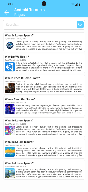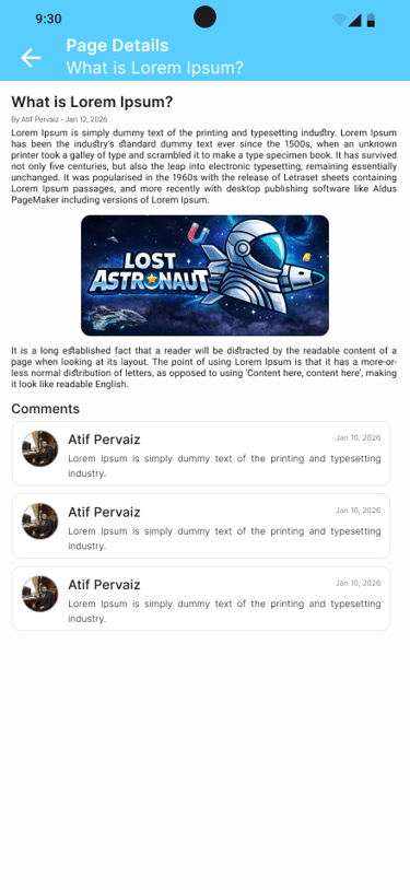 A Blogger-powered app built using Google Blogger APIs that allows users to browse and search blog posts, view detailed articles with comments and labels, and access static pages—all through a clean, fast, and user-friendly interface.