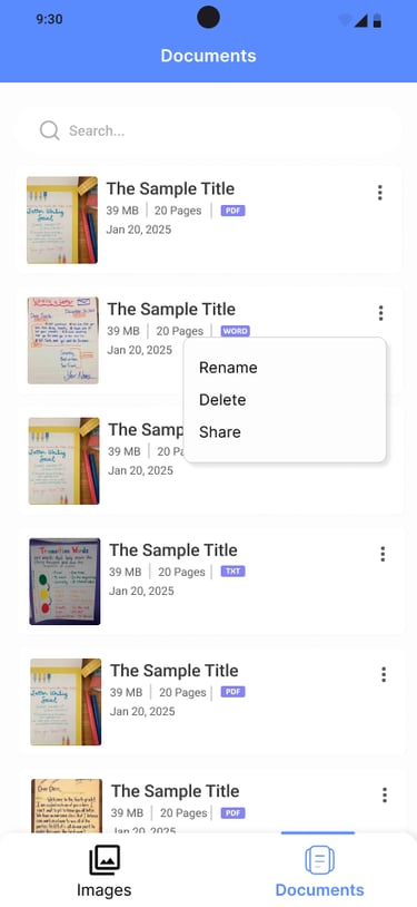 A simple document scanner app that captures images (Camera/Gallery), converts them into PDFs, and lets users view all documents directly within the app. Users can open and view PDFs directly within the app for quick and easy access.