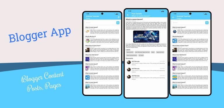 A Blogger-powered app built using Google Blogger APIs that allows users to browse and search blog posts, view detailed articles with comments and labels, and access static pages—all through a clean, fast, and user-friendly interface.